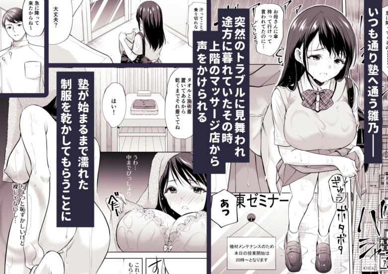 サークル・作家「いもむや - Singleton」より「塾の上のマッサージ屋さん d_474109」がリリース。際どい秘部をギリギリマッサージに快楽覚醒した女子校生が焦らされイカされてしまう同人エロ漫画