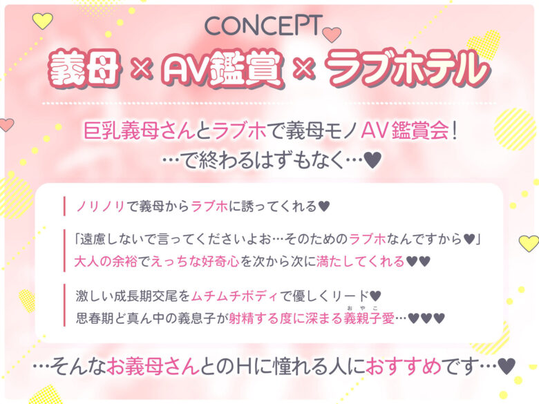 義母にラブホへ連れられ、AV鑑賞から自然と始まる一夜――。この作品の最大の魅力は、シチュエーションのリアルさとギャップのエロさ。コートの下にセクシーランジェリーという衝撃的な登場から、「どうですか…?AVみたいじゃないですか?」と囁かれるシーンは完全に抜きどころ。