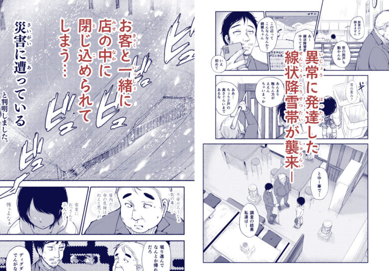山間にある小さな飲食店で、たったひとりで働くショートカットの制服少女。金曜の夜は、いつものように遠距離の彼氏と“エロイプごっこ”を楽しむはずだった——しかし、突如襲った異常気象により、彼女は店内で見知らぬ男たちと閉じ込められてしまう。降り積もる雪、逃げ場のない密室、そして男たちの熱い視線。